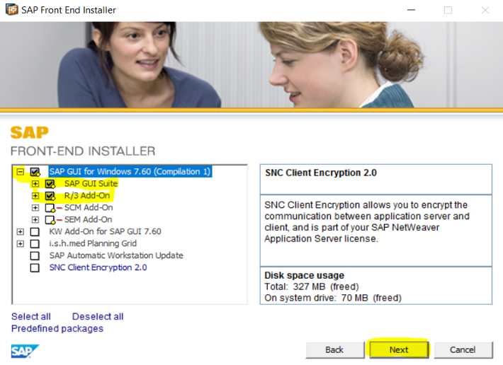 Ahora debemos abrir con el “+” SAP GUI for Windows 7.7….” y debemos marcar el check box de “SAPGUI Suite y R/3 Add-on” (ver imagen de abajo) y presionar sobre el botón “Next”.